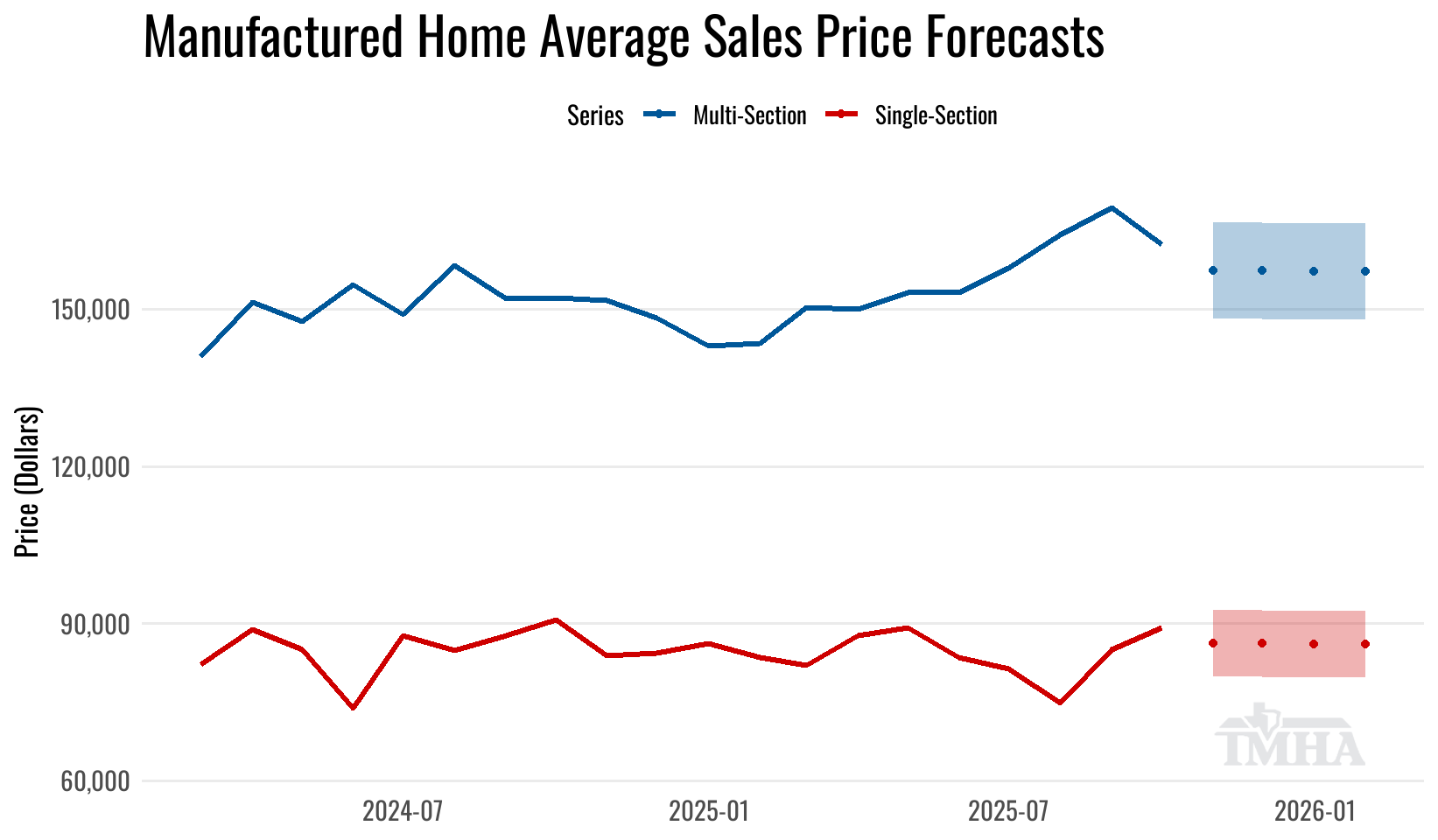 Average Retail Selling Prices with TMHA Forecasts (MHS)
