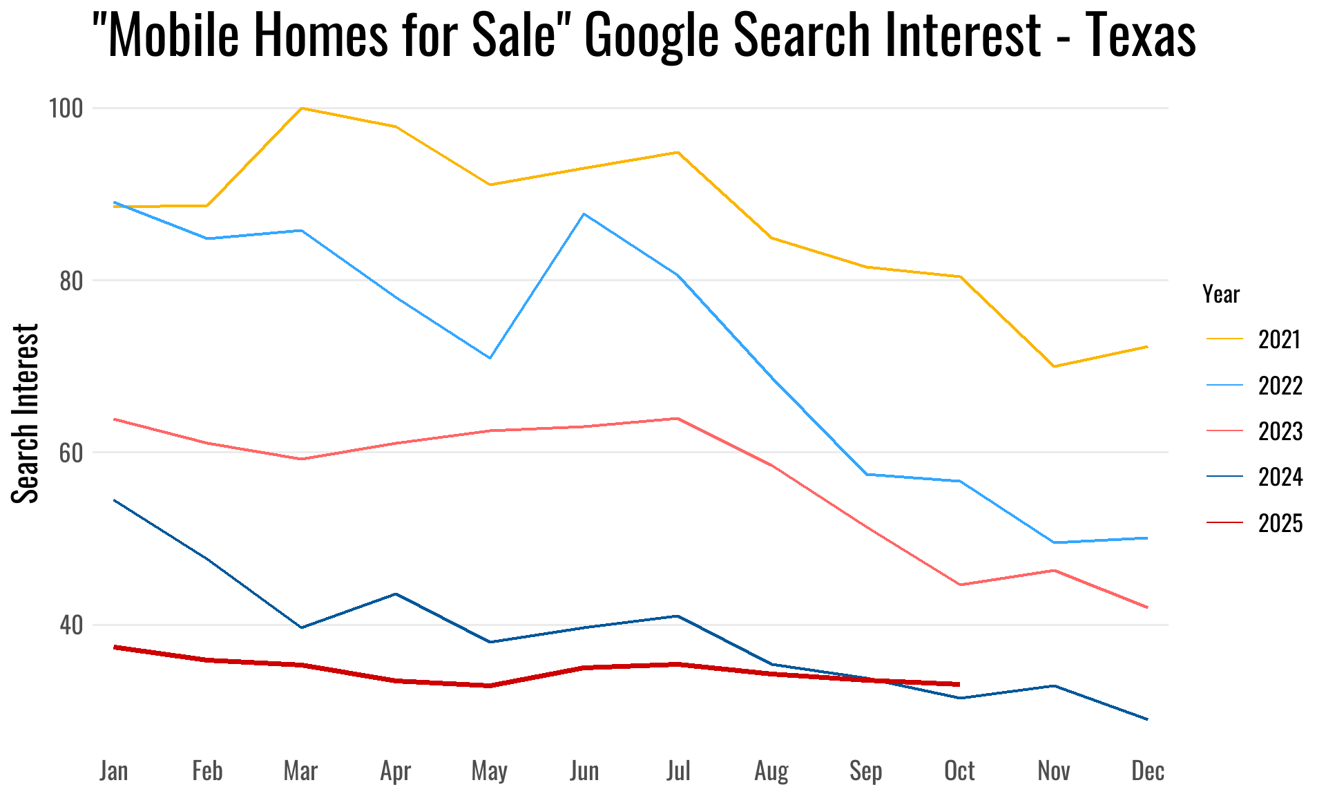 "Mobile Homes for Sale" Google Search Trends Texas October 2025 - Market Demand Analysis